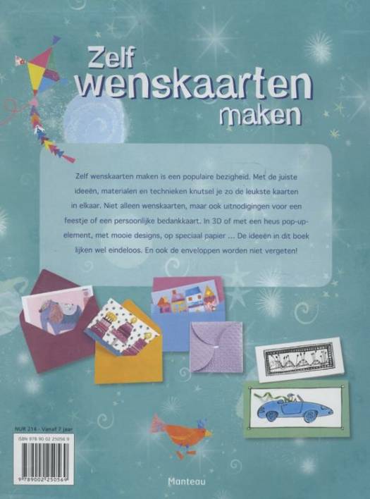 Zelf wenskaarten maken is een populaire bezigheid. Met de juisteideeïn, materialen en technieken knutsel je zo de leukste kaartenin elkaar. Niet alleen wenskaarten, maar ook uitnodigingen voor eenfeestje of een persoonlijke bedankkaart. In 3D of met een heus pop-upelement,met mooie designs, op speciaal papier ... De ideeën in dit boeklijken wel eindeloos. En ook de enveloppes worden niet vergeten!