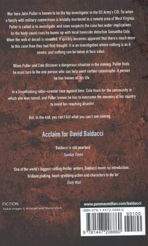 War hero John Puller is known to be the top investigator in the US Army's CID. So when a family with military connections is brutally murdered in a remote area of West Virginia, Puller is called to investigate, and soon suspects the case has wider implications. As the body count rises he teams up with local homicide detective Samantha Cole. As the web of deceit is revealed, it quickly becomes apparent that there's much more to this case than they had first thought. It is an investigation where nothing is as it seems, and nothing can be taken at face value.
