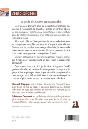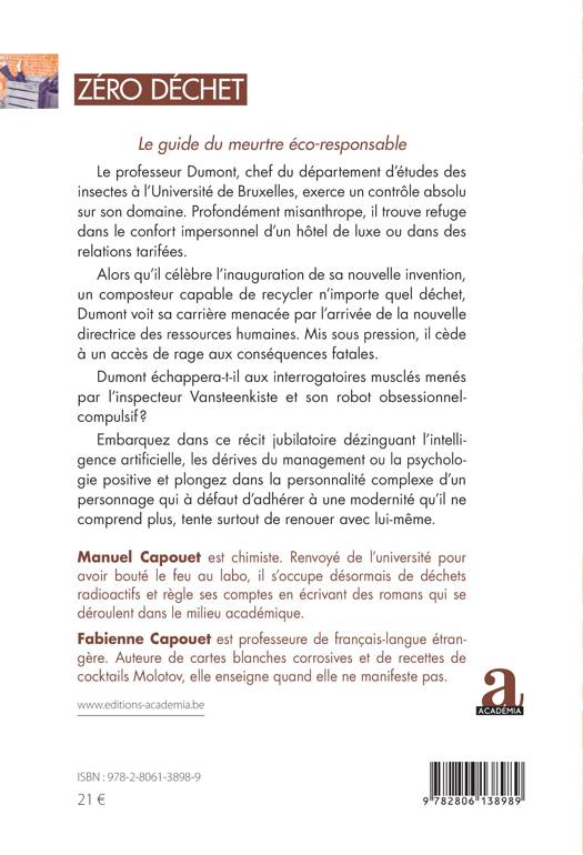 Le professeur Dumont, chef du département d'études des insectes à l'Université de Bruxelles, exerce un contrôle absolu sur son domaine. Profondément misanthrope, il trouve refuge dans le confort impersonnel d'un hôtel de luxe ou dans des relations tarifées. Alors qu'il célèbre l'inauguration de sa nouvelle invention, un composteur capable de recycler n'importe quel déchet, Dumont voit sa carrière menacée par l'arrivée de la nouvelle directrice des ressources humaines. Mis sous pression, il cède à un accès de rage aux conséquences fatales. Dumont échappera-t-il aux interrogatoires musclés menés par l'inspecteur Vansteenkiste et son robot obsessionnel-compulsif ? Embarquez dans ce récit jubilatoire dézinguant l'intelligence artificielle, les dérives du management ou la psychologie positive, et plongez dans la personnalité complexe d'un personnage qui, à défaut d'adhérer à une modernité qu'il ne comprend plus, tente surtout de renouer avec lui-même.