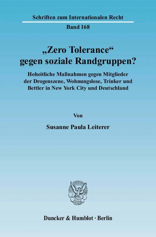 Die Autorin behandelt die aktuellen Polizeistrategien gegenuber Personengruppen, deren Lebensmittelpunkt auf offentlichen Straaen und Platzen liegt, die so genannten sozialen Randgruppen. Vorbild fur diese Polizeistrategien waren die New Yorker "Zero Tolerance"-Strategie und die "Broken Windows"-Theorie. Susanne Leiterer untersucht zunachst die Praxis der "Zero-Tolerance"-Strategie und inwieweit die entsprechenden polizeilichen Maanahmen vor dem US-amerikanischen Recht bestehen konnen. Im Anschluss stellt sie die deutsche Polizeipraxis dar und uberpruft Verfassungs- und Rechtmaaigkeit nach deutschem Recht. Letztlich untersucht Frau Leiterer, ob die New Yorker beziehungsweise eine der "Broken Windows"-Theorie entsprechende Polizeistrategie nach deutschem Recht umsetzbar ware. Dabei wird deutlich, dass Gefahrbegriff und Verantwortlichkeit nach deutschem Recht die wesentlichen Grenzen fur ein Handeln der Polizei im Sinne der "Zero-Tolerance"-Strategie beziehungsweise "Broken Windows"-Theorie setzen. Insbesondere ist das Sicherheitsgefuhl der Bevolkerung, das zur Begrundung der Polizeistrategien herangezogen wird, kein polizeiliches Schutzgut. Die Autorin kommt zu dem Ergebnis, dass das Polizeirecht nicht das richtige Instrumentarium ist, die zunehmenden sozialen Probleme in deutschen Innenstadten zu losen.
