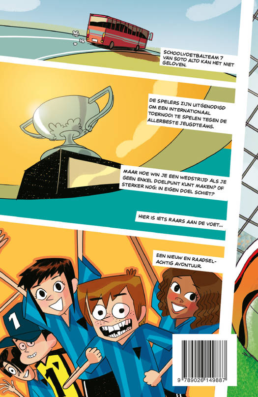 Schoolvoetbalteam 7 van Soto Alto kan het niet geloven. De spelers zijn uitgenodigd om een internationaal toernooi te spelen tegen de allerbeste jeugdteams. Maar hoe win je een wedstrijd als je geen enkel doelpunt kunt maken? Of sterker nog: in eigen doel schiet? Hier is iets heel vreemds aan de voet… Lees het spannende en raadselachtige avontuur over de Doeltrappers.