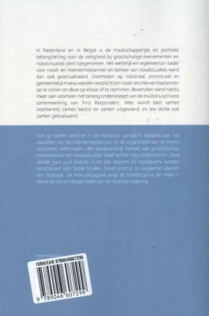 In Nederland en in België is de maatschappelijke en politieke belangstelling voor de veiligheid bij grootschalige evenementen en noodsituaties sterk toegenomen. Het wettelijk en reglementair kader voor nood- en interventieplannen en beheer van noodsituaties werd dan ook geactualiseerd. Overheden op nationaal, provinciaal en gemeentelijk niveau werden verplicht om nood- en interventieplannen op te stellen en deze op elkaar af te stemmen. Bovendien werd hierbij meer dan voorheen het belang onderstreept van de multidisciplinaire samenwerking van ‘First Responders’. Alles wordt best samen voorbereid, samen beslist en samen uitgevoerd, en ten slotte ook samen geëvalueerd. Tot op heden werd er in de literatuur aandacht besteed aan het opstellen van de interventieplannen en de organisatie van de hierbij voorziene oefeningen. Het daadwerkelijk beheer van grootschalige evenementen en noodsituaties bleef echter nog onderbelicht. Deze reader gaat juist daarop in, en kan daarom als naslagwerk worden beschouwd voor beide landen. Zowel practici als academici leveren een bijdrage. De inhoudsopgave volgt de beleidscyclus, en meer in detail de verschillende fasen van de ketenbenadering.