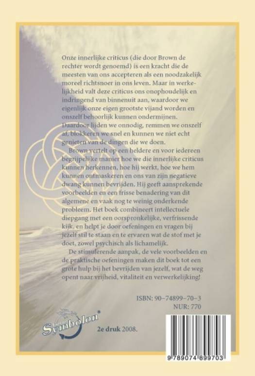 Brown vertelt op een heldere en voor iedereen begrijpelijke manier hoe we die innerlijke criticus kunnen herkennen, hoe hij werkt, hoe we hem kunnen ontmaskeren en ons van zijn negatieve dwang kunnen bevrijden. Hij geeft aansprekende voorbeelden, en een frisse benadering van dit algemene en vaak nog te weinig onderkende probleem. Het boek combineert intellectuele diepgang met een oorspronkelijke, verfrissende kijk, en helpt je door oefeningen en vragen bij jezelf stil te staan en te ervaren wat de stof met je doet, zowel psychisch als lichamelijk.
