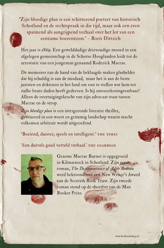 'Zijn bloedige plan is een schitterend portret van historisch Schotland en de rechtspraak uit die tijd, maar ook een even spannend als aangrijpend verhaal over het lot van een eenzame boerenzoon.' - Boris Dittrich