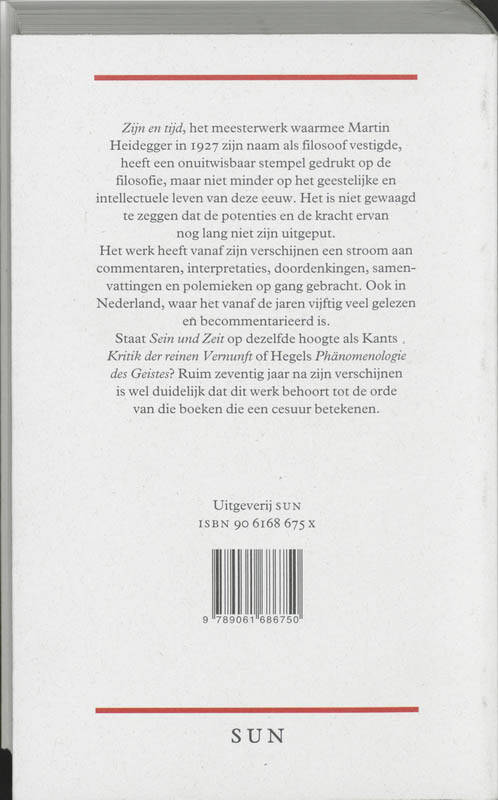Zijn en tijd, het meesterwerk waarmee Martin Heidegger in 1927 zijn naam als filosoof vestigde, heeft een onuitwisbaar stempel gedrukt op de filosofie, maar niet minder op het geestelijke en intellectuele leven van deze eeuw. Het is niet gewaagd te zeggen dat de potenties en de kracht ervan nog lang niet zijn uitgeput. Het werk heeft vanaf zijn verschijnen een stroom aan commentaren, interpretaties, doordenkingen, samenvattingen en polemieken op gang gebracht. Ook in Nederland, waar het vanaf de jaren vijftig veel gelezen en becommentarieerd is. Staat Sein und Zeit op dezelfde hoogte als Kants Kritik der reinen Vernunft of Hegels Phänomenologie des Geistes? Ruim zeventig jaar na zijn verschijnen is wel duidelijk dat dit werk behoort tot de orde van die boeken die een cesuur betekenen.