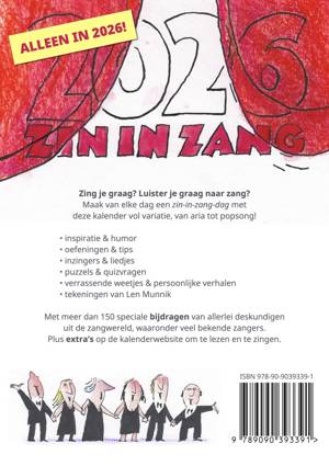 Met meer dan 150 speciale bijdragen van allerlei deskundigen uit de zangwereld, waaronder veel bekende zangers. Plus extra’s op de kalenderwebsite om te lezen en te zingen.