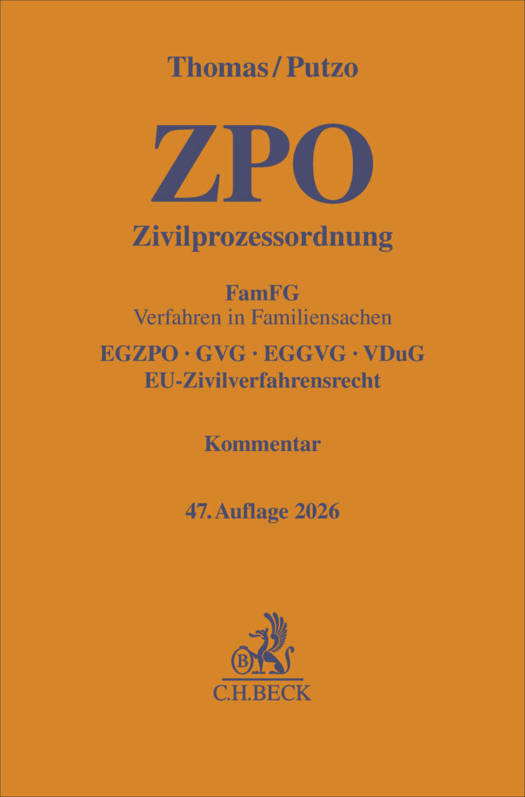 Zur Neuauflage Die 47. Auflage berücksichtigt alle jüngsten Änderungen seit Erscheinen der Vorauflage bis Anfang 2026, wie u.a. durch: Gesetz zur Änd. des Zuständigkeitsstreitwerts der Amtsgerichte, zum Ausbau der Spezialisierung der Justiz in Zivilsachen sowie zur Änd. weiterer prozessualer Regelungen v. 8.12.2025 Gesetz zur Änd. der Vorschriften über die Einführung der elektronischen Akte in der Justiz und über die allgemeine Beeidigung von Gerichtsdolmetschern v. 8.12.2025 Gesetz zur Einführung einer elektronischen Präsenzbeurkundung v. 10.12.2025 Gesetz zur Entwicklung und Erprobung eines Online-Verfahrens in der Zivilgerichtsbarkeit v. 22.12.2025.