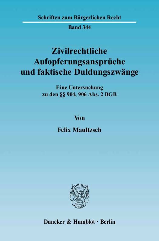 904 Satz 2, 906 Abs. 2 Satz 2 BGB standen lange Zeit am Rande des rechtswissenschaftlichen Interesses. Dies hat sich geändert, seit diese Normen im Anschluß an öffentlich-rechtliche Rechtsfortbildungen dienstbar gemacht werden, um in verschiedensten Konstellationen eine verschuldensunabhängige Haftung im Privatrecht zu begründen. Diese Sichtweise geht davon aus, daß eine Entschädigung nach Aufopferungsgrundsätzen auch bei solchen rechtswidrigen Eingriffen in Eigentumsrechte geboten sei, die zwar de iure, nicht aber tatsächlich abwehrbar waren. Man spricht in diesem Zusammenhang von "faktischen Duldungszwängen".Gegenstand der vorliegenden Arbeit ist eine Kritik der Anwendbarkeit zivilrechtlicher Aufopferungsansprüche auf faktische Duldungszwänge. Im ersten Teil wird hierbei die Vereinbarkeit dieser Rechtsfortbildung mit den Wertungen der negatorischen Ansprüche, des Deliktsrechts, des Bereicherungsrechts und der Gefährdungshaftung hinterfragt. Im zweiten Teil stellt Felix Maultzsch dar, warum die Beschränkung zivilrechtlicher Aufopferungsansprüche auf duldungspflichtige Einwirkungen auch dem immanenten Grundgedanken der Eigentumsaufopferung entspricht. Im Rahmen einer rechtsökonomischen Analyse wird gezeigt, daß das Institut der Eigentumsaufopferung dort an die Stelle beiderseitig vorteilhafter Austauschverträge tritt, wo diese aufgrund eines Marktversagens ausscheiden. Dieser Gedanke trifft nur auf duldungspflichtige Einwirkungen zu.