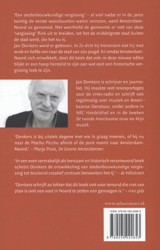 Jan Donkers werd geboren in Amsterdam Noord, en ziet met wrok en liefde om naar de stad van zijn jeugd. En omdat Amsterdam Noord zich blijft ontwikkelen, doet dit boek dat ook: uiteindelijk blijkt er een hoop hersteld te zijn aan dit gebied met zijn moeizame geschiedenis.