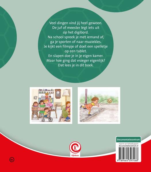 Veel dingen vind jij heel gewoon. De juf of meester legt iets uit op het digibord. Na school spreek je met iemand af, ga je sporten of naar muziekles. Je kijkt een filmpje of doet een spelletje op een tablet. En slapen doe je in je eigen kamer. Maar hoe ging dat vroeger eigenlijk? Dat lees je in dit boek.