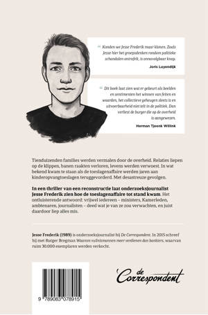 In een thriller van een reconstructie laat onderzoeksjournalist Jesse Frederik zien hoe de toeslagenaffaire tot stand kwam en tot de val van het kabinet kon leiden. De ontluisterende conclusie: vrijwel iedereen – ministers, Kamerleden, ambtenaren, journalisten – deed wat je van ze zou verwachten, en juist daardoor liep alles mis.