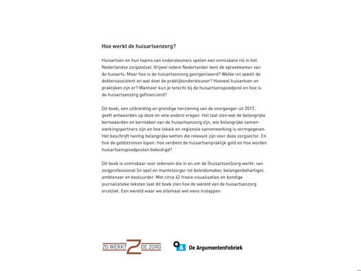 Dit boek, een uitbreiding en grondige herziening van de voorganger uit 2017, geeft antwoorden op deze en vele andere vragen. Het laat zien wat de belangrijke kernwaarden en kerntaken van de huisartsenzorg zijn, wie belangrijke samenwerkingspartners zijn en hoe lokale en regionale samenwerking is vormgegeven. Het beschrijft twintig belangrijke wetten die relevant zijn voor deze zorgsector. En hoe de geldstromen lopen: hoe verdient de huisartsenpraktijk geld en hoe worden huisartsenspoedposten bekostigd?