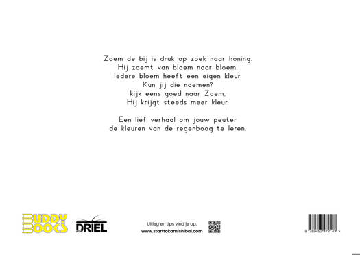 Zoem de bij is druk op zoek naar honing. Hij zoemt vrolijk van bloem naar bloem. Elke bloem heeft een andere kleur — kun jij ze allemaal noemen?