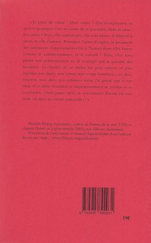 Introuvable, ce roman n'a pas été réédité depuis 1920. Il est préfacé par Michèle Friang, historienne et biographe d'Augusta Holmès, la compagne de Catulle Mendès. Ce roman traite de l'inceste. Léopold et Stéphana de la Roquebrussane sont frère et sœur mais ne se rencontrent qu'à l'âge adulte et tombent amoureux l'un de l'autre. De cette passion incestueuse, Catulle Mendès, écrivain phare du Décadentisme (XIXe s.), dresse la figure de la sœur chargée de toutes les valeurs qui occupent ce courant littéraire : la transgression, l'inversion des genres sexuels, la féminité dévoratrice. Il dramatise son récit de l’interdit en se référant à Zo'har, une des cinq villes incendiées dans les mêmes conditions que Sodome et Gomorrhe dans l'Ancien Testament.