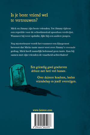 Mick en Jimmy zijn beste vrienden. Tot Jimmy tijdens een repetitie voor de schoolmusical spoorloos verdwijnt. Wanneer hij weer opduikt, lijkt hij een andere jongen. Nog mysterieuzer wordt het wanneer een klasgenoot beweert dat Micks tante meer weet over Jimmy's vreemde gedrag. Mick heeft namelijk helemaal geen tante. Kan hij samen met zijn vrienden de waarheid achterhalen? Een griezelig goed geschreven debuut met veel humor. Over duistere krachten, hechte vriendschap en jezelf overstijgen.