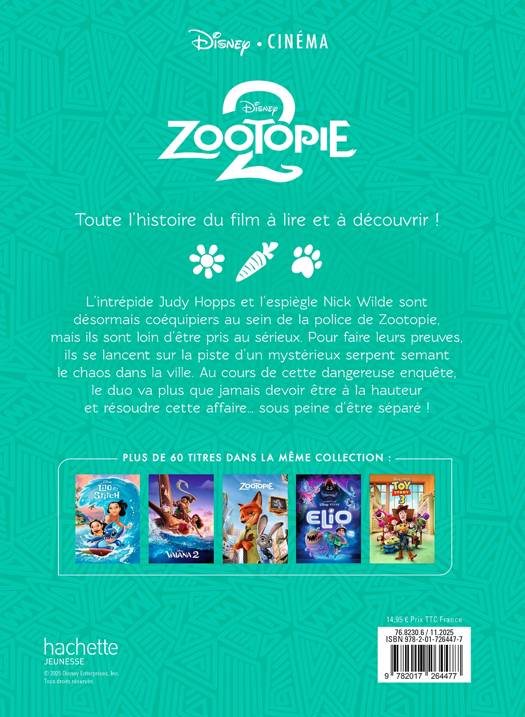 Résumé : L’intrépide Judy Hopps et l’espiègle Nick Wilde sont désormais coéquipiers au sein de la police de Zootopie, mais ils sont loin d’être pris au sérieux. Pour faire leurs preuves, ils se lancent sur la piste d’un mystérieux serpent semant le chaos dans la ville. Au cours de cette dangereuse enquête, le duo va plus que jamais devoir être à la hauteur et résoudre cette affaire… sous peine d’être séparé !
