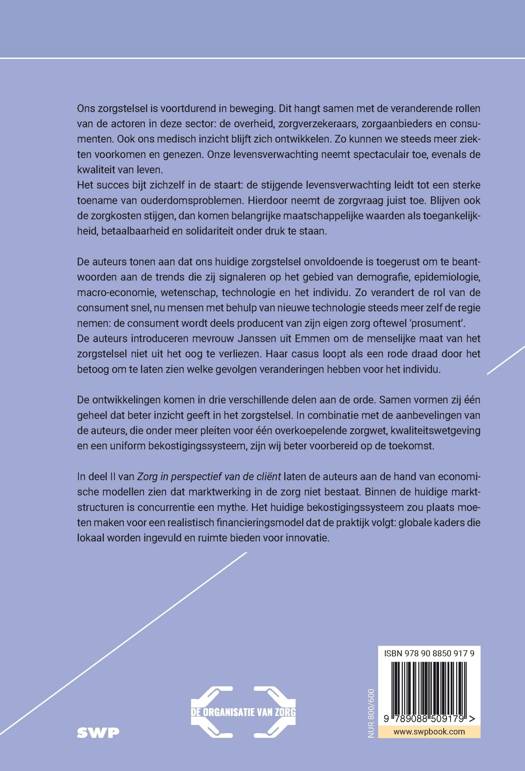 De auteurs tonen aan dat ons huidige zorgstelsel onvoldoende is toegerust om te beantwoorden aan de trends die zij signaleren op het gebied van demografie, epidemiologie, macro-economie, wetenschap, technologie en het individu. Zo verandert de rol van de consument snel, nu mensen met behulp van nieuwe technologie steeds meer zelf de regie nemen: de consument wordt deels producent van zijn eigen zorg oftewel ‘prosument’. De auteurs introduceren mevrouw Janssen uit Emmen om de menselijke maat van het zorgstelsel niet uit het oog te verliezen. Haar casus loopt als een rode draad door het betoog om te laten zien welke gevolgen veranderingen hebben voor het individu.