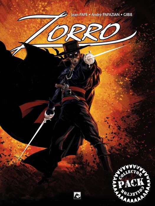 Zorro werd in 1919 geboren uit de pen van Johnston Mc Culley. Bijna 100 jaar later heeft de gemaskerde held niets van zijn vurigheid verloren... Don Diego de la Vega, is een respectabele burger overdag, maar bestrijdt ‘s nachts het onrecht met de punt van zijn zwaard. De gemaskerde ruiter en zijn beroemde sergeants Garcia, Benardo en Tornado hebben de kindertijd van verschillende generaties op zijn kop gezet met hun romans, films, tv-series, tekenfilms en veel strips. Jean Pape was een van de meest getalenteerde tekenaars van Zorro en tekende deze avonturen meer dan 10 jaar lang. Drie van zijn mooiste verhalen zijn geselecteerd, volledig vernieuwd en ingekleurd: Duel met het machinegeweer, de ontvoering van Juanita en de gieren.