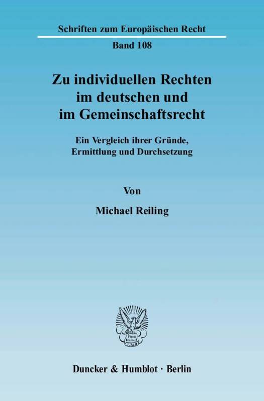 Im indivuellen Recht konzentriert sich begrifflich die Stellung des einzelnen in der Gemeinschaft. Gegenstand der Untersuchung ist ein Strukturvergleich der Antworten, die das deutsche Recht und das Gemeinschaftsrecht bieten.Die Darstellung der Voraussetzungen individueller Rechte mißt - ausgehend vom deutschen subjektiv-öffentlichen Recht - der rechtstechnischen Ermittlung von Rechten als Positionen und Relationen besonderes Gewicht bei. Dies wurde bisher vernachlässigt; insoweit schließt Michael Reiling eine Lücke. Weiterhin untersucht er die Beziehung individueller Rechte zu ihrer prozessualen Umgebung. Neben dem Primärrechtsschutz skizziert er weitere prägende Elemente anhand des jeweiligen Haftungsregimes. Der Strukturvergleich zeigt, daß trotz des nachzuweisenden Konvergenzpotentials ein wesentlicher Unterschied bleibt. Dieser besteht in der aus deutscher Perspektive grundsätzlich objektivrechtlichen Strukturierung aggregierter Interessen.