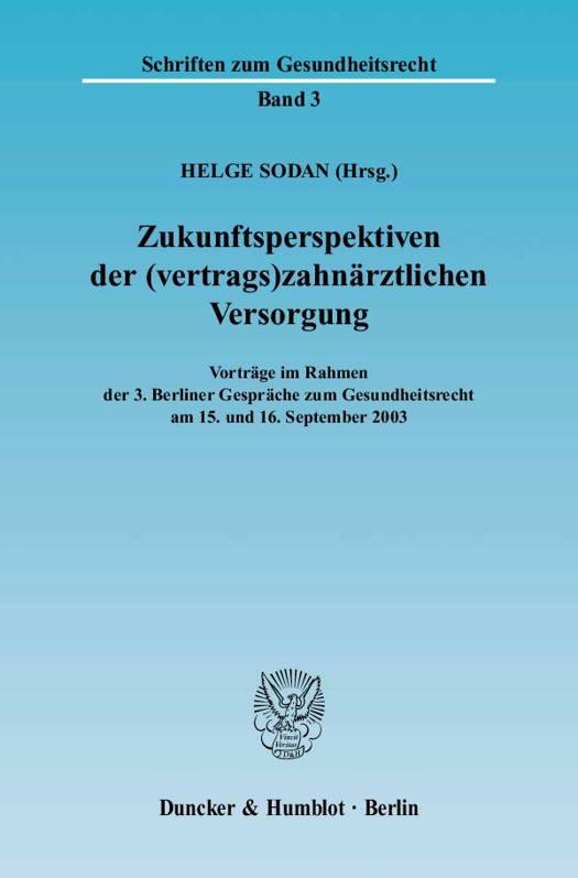 Die seit einigen Jahren geführte Diskussion über die Ausgliederung von Leistungsbereichen aus der gesetzlichen Krankenversicherung betrifft wesentlich die vertragszahnärztliche Versorgung, insbesondere die Versorgung mit Zahnersatz. Die 3. Berliner Gespräche zum Gesundheitsrecht widmeten sich den Zukunftsperspektiven der (vertrags)zahnärztlichen Versorgung vor allem aus juristischer und politischer Sicht.