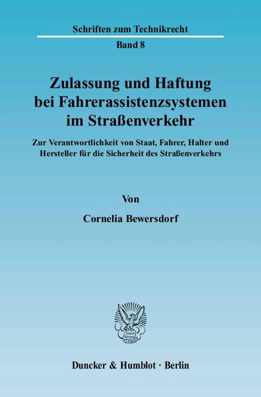 Die Autorin bewertet in ihrer Arbeit die rechtliche Zulässigkeit bestehender und zukünftiger Systeme der aktiven Sicherheit in Kraftfahrzeugen und untersucht mögliche haftungsrechtliche Folgen für Fahrer, Halter, Hersteller und Staat. Diese Systeme werfen aus zulassungsrechtlicher Sicht Fragen im Zusammenhang mit der Einführung und deren Einklang mit internationalen Vorschriften und Verträgen auf. Dabei werden auch die Anforderungen an die Sicherheit der Systeme im Einzelnen untersucht. Die rechtliche Untersuchung führt zu dem Ergebnis, daß die nationalen und internationalen Zulassungsvorschriften einer Einführung von nicht-übersteuerbaren Fahrerassistenzsystemen grundsätzlich nicht entgegenstehen. Die neuen Systeme führen für Fahrer und Halter zu neuen Sorgfaltspflichten im Straßenverkehr. Anhand von Fallbeispielen werden diese beschrieben und die haftungsrechtlichen Folgen auch unter dem Aspekt neuer Anscheinsbeweissituationen bewertet. Die Konstruktionspflichten der Hersteller bei Forschung und Entwicklung dieser Systeme werden ebenfalls untersucht. Dabei steht die Frage der Mindestsicherheit im Vordergrund. Des Weiteren wird dargelegt, über welche Eigenschaften beim Gebrauch von Fahrerassistenzsystemen der Hersteller den Benutzer aufklären muss. Außerdem werden mögliche Fallkonstellationen herausgearbeitet und aufgezeigt, in denen eine Haftung des Staates beim Betrieb von Infrastrukturanlagen, die in das Fahrverhalten einzelner Fahrzeuge eingreifen, vorliegen könnte.