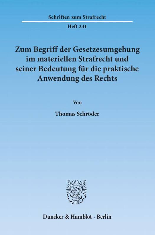 Nach einer Bestandsaufnahme möglicher Umgehungshandlungen im deutschen Strafrecht geht Thomas Schröder im ersten Teil seiner Arbeit der allgemeinen rechtstheoretischen Fragestellung nach, was (insbesondere im Strafrecht) Umgehungshandlungen eigentlich kennzeichnet. Auf Grundlage der so gewonnenen Erkenntnisse erörtert er im zweiten Teil ausführlich, ob sich für die an das strenge Gesetzlichkeitsprinzip gebundenen Staatsgewalten Besonderheiten bei der Rechtsetzung und Rechtsanwendung daraus ergeben, dass eine Gesetzesumgehung erkannt worden ist.