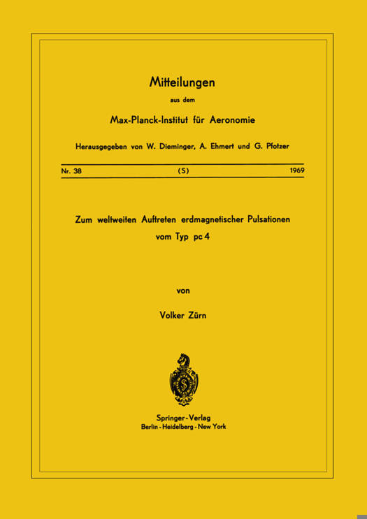 Messungen haben gezeigt, dal3 die hohe Atmosphare von rund 1 000 km H6he ab aus hochionisiertem Plasma besteht und dal3 ihre Eigenschaften wesentlich durch das erdmagnetische Feld bestimmt werden. Man bezeichnet deshalb die ionisierte Komponente der hohen Atmosphare oberhalb der Ionosphare als Ma- gnetosphare. Zur Untersuchung ihrer physikalischen Eigenschaften k6nnen unter anderem auch e r d m - g net i s c h e P u I sat ion e n herangezogen werden. Das sind auffallend regelmalHge Schwankungen des erdmagnetischen Feldes im Periodenbereich von Sekunden bis zu einigen Minuten. Sie haben Amplituden 5 von der Gr613enordnung ein Gamma (y) (ly = 10- Gaul3). Eine Nomenklatur aus dem Jahre 1963 unterteilt die Pulsationen nach ihrem Erscheinungsbild in re- gelmal3ige pc's (continuous pulsations) und weniger regelmal3ige pi's (irregular pulsations). Weiter wer- den diese Typen nach ihrer Periode unterschieden [JACOBS et al. 1964]. tiber diese Klassifikation un- terrichtet die folgende Tabelle. Dort sind auch Bezeichnungen fUr einige schon langer bekannte Pulsations- typen angegeben, die ihrer Periode nach zum Teil in die betreffende Klasse fallen.