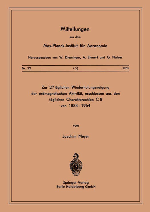 Die Entwicklung und Anwendung geeigneter statistischer Methoden zur Behandlung geophysikalischer Zeitreihen bilden einen wesentlichen Teil des Werkes von Prof. JULIUS BARTELS. Die vorliegenden Untersuchungen zur 27 -tagliehen Wiederholungsneigung der erdmagnetisehen Aktivitat wurden von ihm im Herbst 1959 begonnen und seit dem Friihjahr 1960, mit Unterbre ehungen, zusammen mit dem als Verfasser Zeiehnenden fortgesetzt. Es ist mir eine schmerzliche Pflicht, die Arbeit alleine zu einem vorlaufigen Ab sehlu/3 bringen zu miissen. Ein erster Manuskriptentwurf ( au/3er der Einleitung und 7 ) ist noeh von Prof. BARTELS durchgesehen worden. Seine Vorschlage zur Stoffglie derung sowie zur graphisehen Darstellung der aquivalenten Wiederholungs zahlen w(n) sind in der naehfolgenden Fassung voll beriicksichtigt. Aueh von der Existenz der halbjahrigen Welle in der Wiederholungsneigung hat er noeh Kenntnis nehmen konnen. Wenn trotzdem davon abgesehen wurde, ihn als Mit verfasser zu nennen, so urn seinen Namen nieht naehtraglieh mit der Verant wortung fUr etwaige Mangel in der Formulierung zu belasten, in der er seIber ein Meister war. Neben dem Ausdruek tiefer Dankbarkeit gegeniiber meinem Lehrer sei jedoeh der Anteil besonders betont, der Prof. BARTELS person lieh an den vorliegenden Ergebnissen zukommt, nieht nur hinsiehtlich An regungen und Diskussionen, sondern aueh direkt beim Fortgang der Arbeit. J. M. -5- Inhaltsverzeichnis I. E inl ei tung 1. Problemstellung und Begriffsbestimmungen . . . Seite 7 S 2. Aufgabe und Ziel der Arbeit . . . . . . . . . . . . . . . . . . . . . . . . . . . . . . . . . . . .