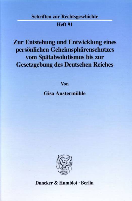 Entstehung und Entwicklung der gegenüber einem Ausforschen durch den Staat rechtlich geschützten persönlich-privaten Geheimsphäre sind bislang nur teilweise aufgeklärt. Gisa Austermühle beleuchtet die öffentlich-rechtlichen Aspekte eines persönlichen Geheimsphärenschutzes in der Staatsrechtslehre und Polizeiwissenschaft, im Verfassungsrecht, im Strafprozeßrecht sowie im materiellen Strafrecht in der Zeit von der Mitte des 18. Jahrhunderts bis zum Erlaß der Reichsstrafprozeßordnung und des Reichsstrafgesetzbuches.
