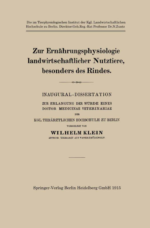 Zur Ernährungsphysiologie Landwirtschaftlicher Nutztiere, Besonders Des Rindes