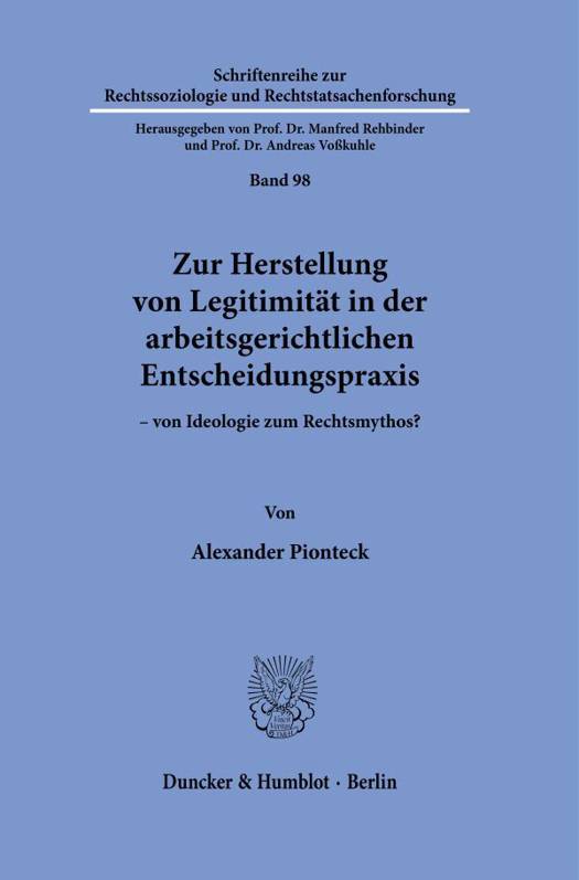Untersuchungsgegenstand ist die soziologische und ideologiekritische Analyse ausgewahlter arbeitsgerichtlicher Judikate. Den analytischen Begriffsrahmen bilden die folgenden drei Theoreme: Legitimitat, Ideologie und Rechtsmythos. Die Mechanismen zur Herstellung von Legitimitat in der arbeitsgerichtlichen Entscheidungspraxis werden transparent gemacht: autoritarer Sprachstil und Aufbau, Verwissenschaftlichung und Objektivierung durch Zitation, Bezug auf anderer Ansicht, Ruckgriff auf herrschende Meinung, Perpetuierung verzerrter Arbeitswirklichkeit. Diese Merkmale der Legitimitatsherstellung bilden eine Rechtsfassade. Sie verstellen den Blick auf die hinter den Entscheidungsgrunden liegenden ideologischen Zusammenhange. Die Entscheidungsinhalte der Judikate werden vor diesem Hintergrund einer Ideologiekritik zugefuhrt. Ergebnis sind die praktizierte Dialektik von Flexibilisierung und Ordnung der Arbeitsbedingungen sowie eine Uberakzentuierung von Eigentum und Vermogen.