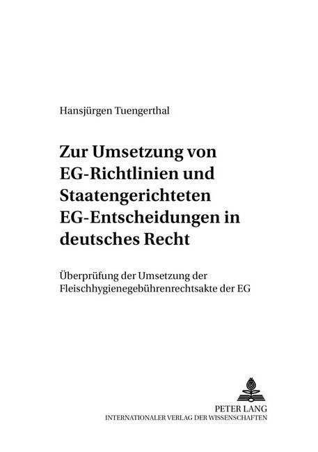 Das nationale Recht wird mehr und mehr durch EG-Recht beeinflusst. In diesem Zusammenhang ergeben sich bei denjenigen EG-Rechtsakten, die anders als EG-Verordnungen nicht unmittelbar in den Mitgliedstaaten gelten, sondern von diesen in nationales Recht umgesetzt werden müssen, vielfältige Probleme. Diese Probleme behandelt der Verfasser aus der Sicht des Anwalts in einer Weise, dass diejenigen, die sich in der Praxis mit derartigen Umsetzungsfragen zu beschäftigen haben, wertvolle Hinweise für eine konkret zu lösende Umsetzungsproblematik erhalten. Ergänzt und damit noch transparenter werden seine Lösungsvorschläge dadurch, dass der Verfasser sie im zweiten Teil der Untersuchung auf die konkrete Fragestellung anwendet, inwieweit es zu einer Umsetzung bzw. ordnungsgemäßen Umsetzung der in den Jahren 1988 bis 2001 erlassenen Fleischhygienegebührenrechtsakte der EG gekommen ist.