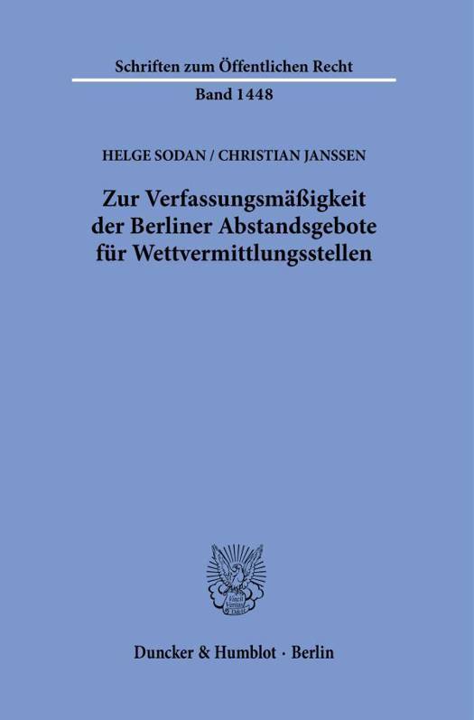 Nachdem das fur Sportwetten geltende Recht lange nicht im Fokus von Rechtsprechung und Literatur stand, hat es in den letzten eineinhalb Jahrzehnten vielfaltige Entwicklungen vollzogen. Dazu gehort auch das Berliner Gesetz zur Anderung des Ausfuhrungsgesetzes zum Glucksspielstaatsvertrag und anderer Rechtsvorschriften vom 18. Marz 2020. Mit dieser Anderung des Ausfuhrungsgesetzes hat der Berliner Landesgesetzgeber im Bereich des terrestrischen Sportwettenmarktes bestehende Abstandsgebote fur Wettvermittlungsstellen durch quantifizierte Meterabstandsgebote konkretisiert und daruber hinaus neue Abstandsvorschriften geschaffen. Im Gesetzgebungsverfahren wurde diese Ausweitung der Abstandsgebote auch mit Verweis auf den sogenannten Spielhallen-Beschluss des Bundesverfassungsgerichts von 2017 verteidigt, in welchem das Gericht Abstandsgebote fur Spielhallen als verfassungsgemaa beurteilt hat. Die Arbeit uberpruft die Ubertragbarkeit dieser Entscheidung auf die Berliner Abstandsgebote fur Wettvermittlungsstellen und somit die Frage, ob diese mit dem Grundgesetz und der Verfassung von Berlin vereinbar sind.