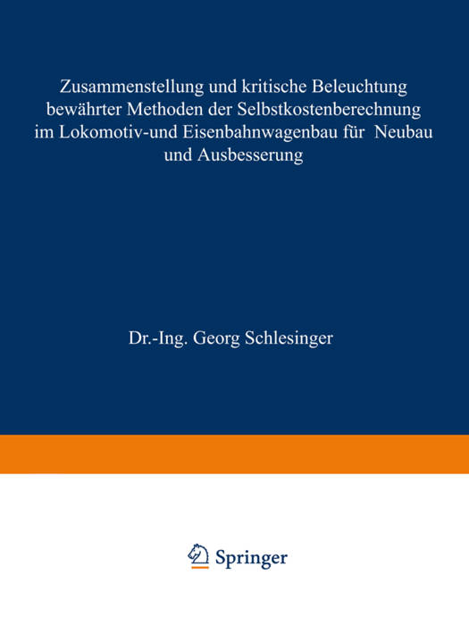 Zusammenstellung Und Kritische Beleuchtung Bewährter Methoden Der Selbstkostenberechnung Im Lokomotiv- Und Eisenbahnwagenbau Für Neubau Und Ausbesserung