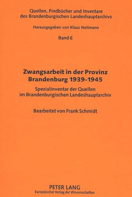 Die Publikation gibt einen umfassenden Überblick über die im Brandenburgischen Landeshauptarchiv vorhandenen Quellen zum Einsatz von Zwangsarbeitern in der Provinz Brandenburg während des Zweiten Weltkrieges. Einleitend erfolgt eine kurze Einführung in die Thematik und eine Beschreibung der differenzierten Überlieferungslage im Brandenburgischen Landeshauptarchiv. Den Hauptteil bildet das Verzeichnis der durch Aktentitel und Enthält-Vermerke ausgewiesenen Quellen. Ein Orts- und ein Sachregister erleichtern den Zugriff.
