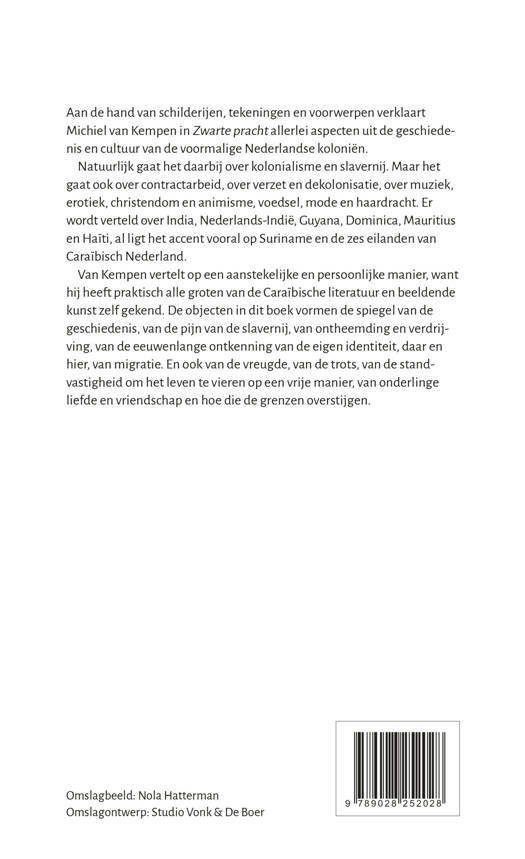 Aan de hand van schilderijen, tekeningen en voorwerpen verklaart Michiel van Kempen in Zwarte pracht allerlei aspecten uit de geschiedenis en cultuur van de voormalige Nederlandse koloniën. Natuurlijk gaat het daarbij over kolonialisme en slavernij. Maar het gaat ook over contractarbeid, over verzet en dekolonisatie, over muziek, erotiek, christendom en animisme, voedsel, mode en haardracht. Er wordt verteld over India, Nederlands-Indië, Guyana, Dominica, Mauritius en Haïti, al ligt het accent vooral op Suriname en de zes eilanden van Caraïbisch Nederland.