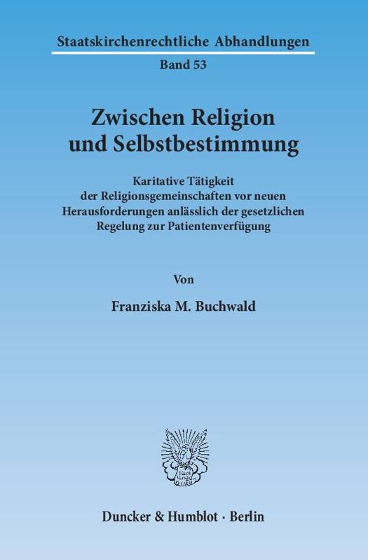 Mit der Regelung zur Patientenverfügung legte der Gesetzgeber fest, dass der im Vorfeld geäußerte Wille des Patienten zu sterben, unabhängig von Art und Stadium einer Erkrankung, verbindlich ist. Einigen Religionsgemeinschaften, die hinter Trägern karitativer Einrichtungen stehen, geht diese Regelung aufgrund ihrer religiösen Vorstellung zu weit. Es offenbart sich ein Spannungsfeld zwischen dem Selbstbestimmungsrecht des Einzelnen und dem der Religionsgemeinschaften. Die Arbeit beschreibt dieses Spannungsfeld und entwickelt und diskutiert Gestaltungsmöglichkeiten, mit denen die Interessen von Patient, Staat und Kirche teilweise ausgeglichen werden könnten. Sie reichen von einem Rückzug aus der organisierten karitativen Tätigkeit bis hin zu einem Weigerungsrecht für Einrichtungen und Personal. Ein Schwerpunkt der Betrachtungen liegt auf der Gestaltung von Heim- bzw. Behandlungsverträgen, wobei sich zeigt, dass im Bereich der Pflege ein weiterer Spielraum besteht als im Bereich der Krankenversorgung. Zudem werden Einflussmöglichkeiten der Religionsgemeinschaften auf die Einrichtungen sowie die Steuerung mithilfe des kirchlichen Arbeitsrechts beleuchtet.